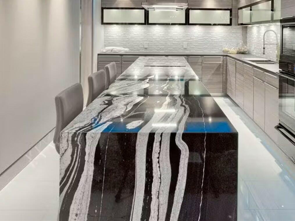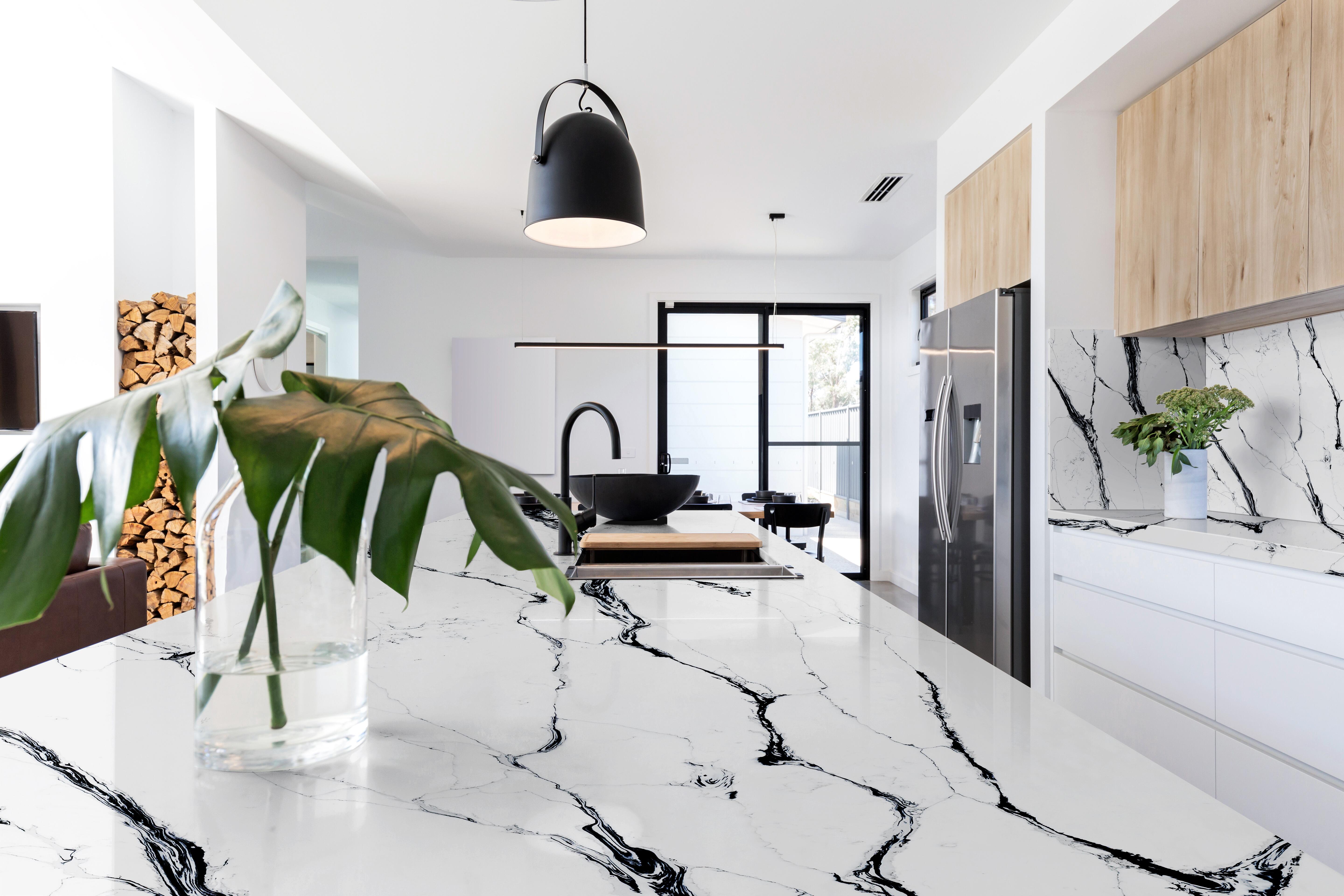 Porcelain slabs are crafted from ceramic clay and mineral colourants, making them highly durable and non-porous. The heating and firing process during manufacturing enhances their strength and resilience. Porcelain is an excellent choice for both indoor and outdoor countertops, offering a wide variety of colours and patterns that replicate the look of natural marble, granite, and other stones. Its versatility and durability make it a preferred option for a range of applications.